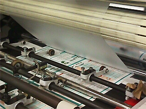 ラミネート加工とは、接着剤を塗布した専用のフィルム(材質はPET)を原稿にはりあわせる加工のことです。この加工により、表面保護や耐久性を高めたり、改造改ざん等を防止することができます。